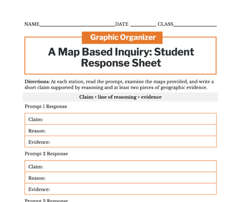 A Map Based Inquiry: Student Response Sheet Graphic Organizer