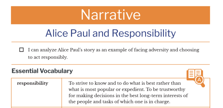 - I can analyze Alice Paul’s story as an example of facing adversity and choosing to act responsibly.