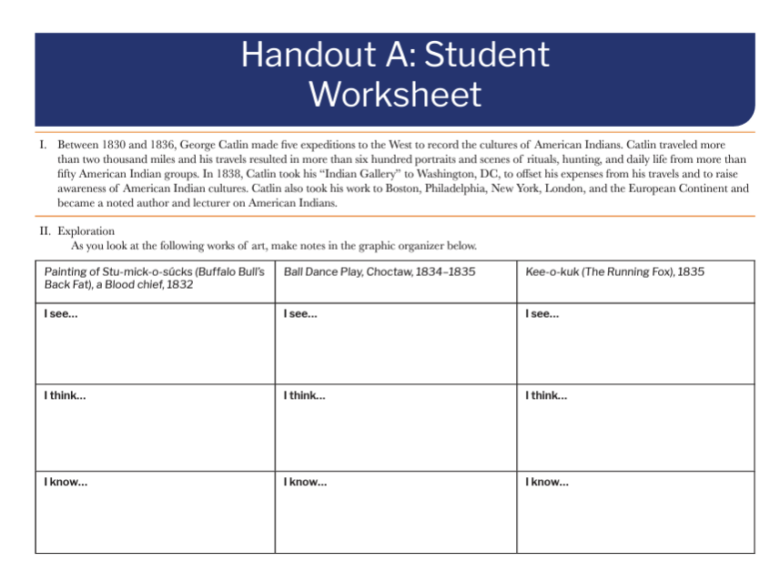 A graphic organizer to guide students through six works of art depicting American Indians. Application questions and short answer practice writing questions included.