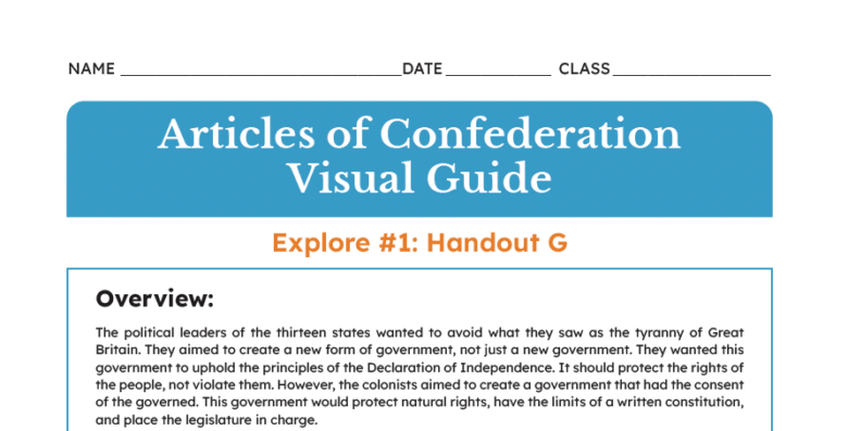 Page:Resources LibraryArrow iconCurriculum:ElementaryArrow iconLesson:Consequences of the American Revolution Articles of Confederation Visual Guide | ElementaryA visual representation of the documents main ideas.