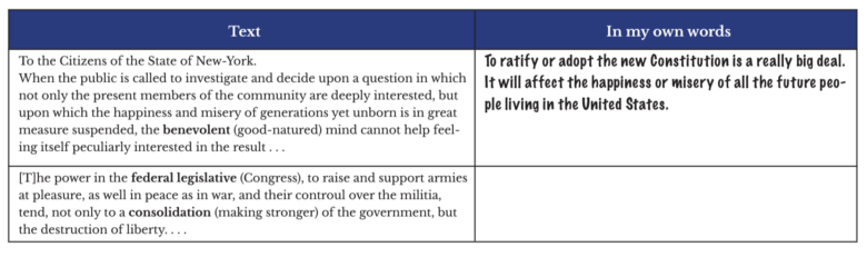 | [T]he legislature of the United States are vested with (given) the great and uncontrollable powers, of laying and collecting taxes, duties, imposts, and excises (forms of taxes). …And are by this clause invested with the power of making all laws, proper and necessary, for carrying all these into execution; and they may so exercise this power as entirely to annihilate (destroy or eliminate) all the state governments, and reduce this country to one single government…besides, it is a truth confirmed by the unerring experience of ages, that every man, and every body of men, invested with power, are ever disposed to increase it, and to acquire a superiority over every thing that stands in their way. This disposition (character trait), which is implanted (naturally a part of) in human nature, will operate in the federal legislature to lessen and ultimately to subvert (weaken) the state authority, and having such advantages, will most certainly succeed, if the federal government succeeds at all. | |