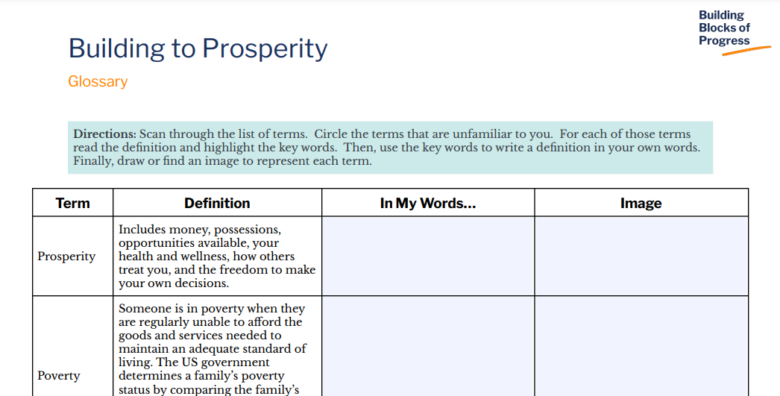Building to Prosperity Glossary