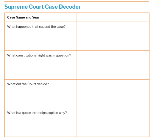 A student handout to guide students understanding of the structure and purpose of a Supreme Court decision.