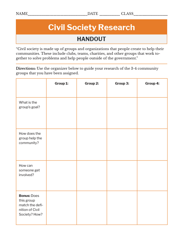 | Bonus: Does this group match the definition of Civil Society? How? |
