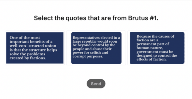 An interactive activity that asks students to catagorize the positions of the Federalist and Anti-Federalists.
