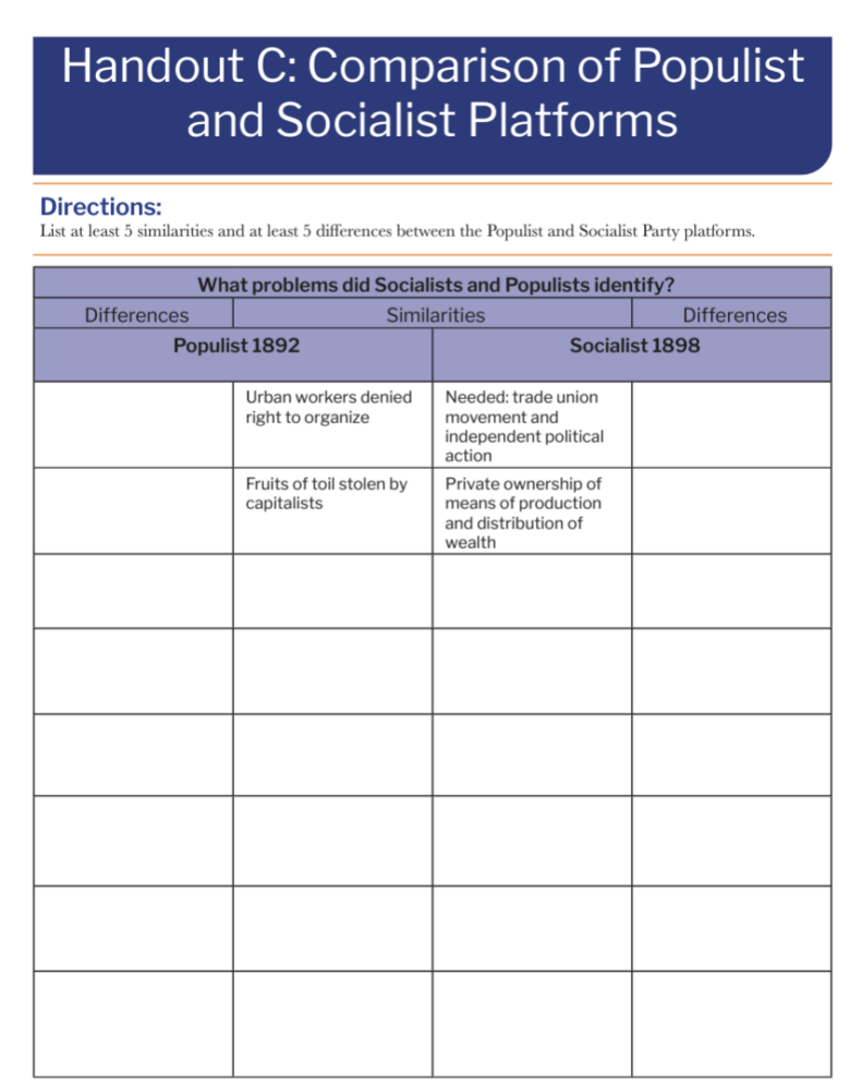 Comparison of Populist and Socialist Platforms