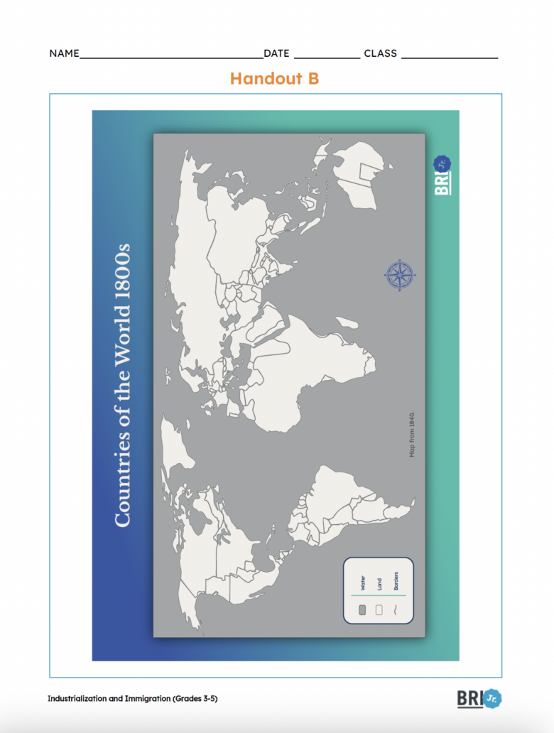 Page:Resources LibraryArrow iconCurriculum:ElementaryArrow iconLesson:Industrialization and ImmigrationCountries of the World 1800s Map | ElementaryA map of the main countries whose people emigrated to the United States between 1820-1877.