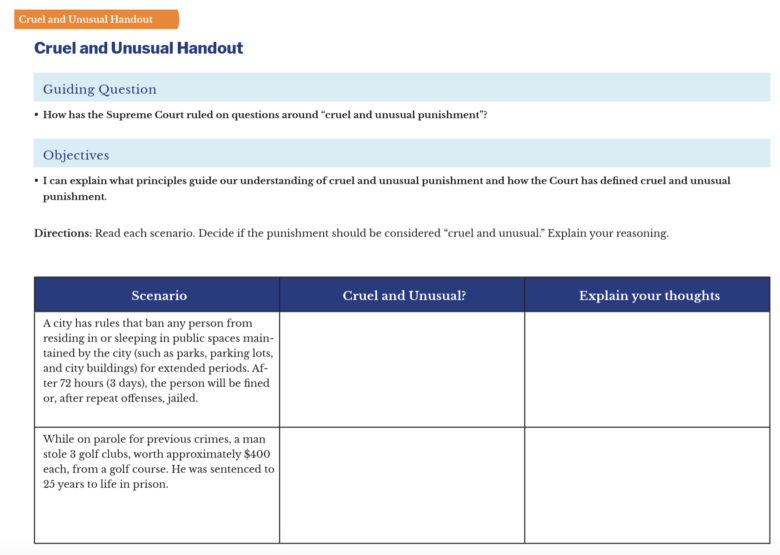 Directions: Read each scenario. Decide if the punishment should be considered “cruel and unusual.” Explain your reasoning.