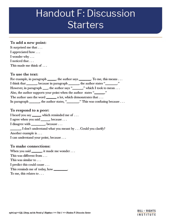 Page:Resources LibraryArrow iconCurriculum:Life, Liberty, and the Pursuit of HappinessArrow iconUnit:Chapter 1: 1491-1607Arrow iconLesson:Paideia Seminar: Christopher ColumbusDiscussion StartersA handout to start students on the discussion prompts for the Paideia Seminar.
