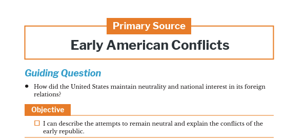 - I can describe the attempts to remain neutral and explain the conflicts of the early republic.