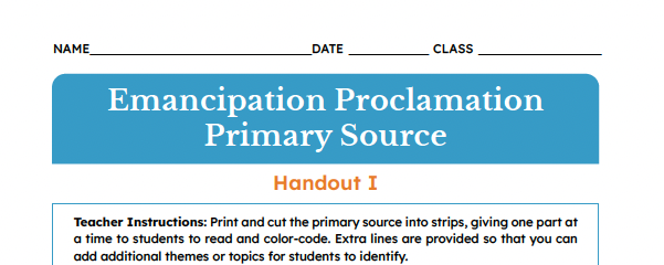 Page:Resources LibraryArrow iconCurriculum:ElementaryArrow iconLesson:Course of the American RevolutionEmancipation Proclamation Primary Source | ElementaryA scaffolded version of this primary source for elementary students.