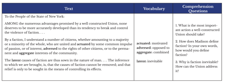 | Text | Vocabulary | Comprehension Questions |