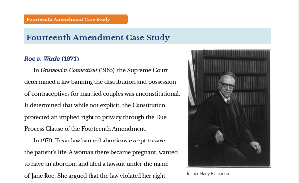 A case study using the on landmark substantive due process Supreme Court case, Roe v. Wade.