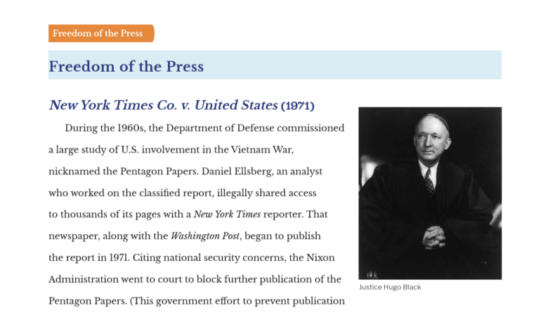 Case studies on landmark freedom of the press Supreme Court cases.