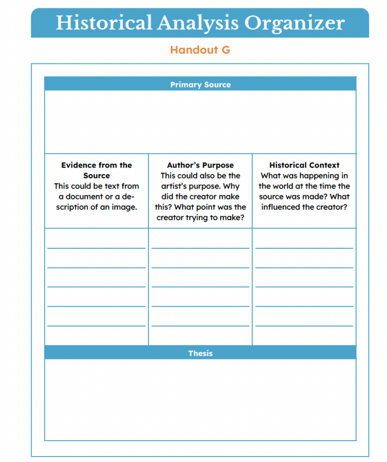 Historical Analysis Organizer | Elementary