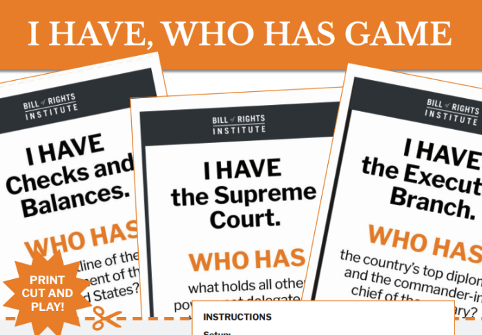 A card game to gauge student understanding of the Constitutional System of Government Lesson.