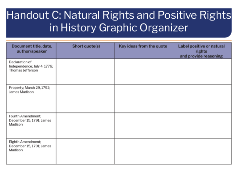 Use this graphic organizer alongside the Natural Rights and Positive Rights in History Primary Sources to guide students understanding.