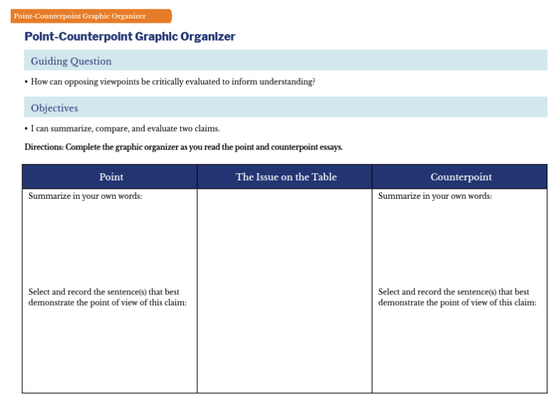 Point-Counterpoint Graphic Organizer