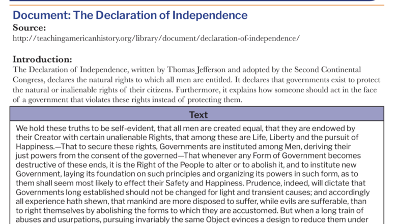 Primary Source Excerpt Declaration of Independence