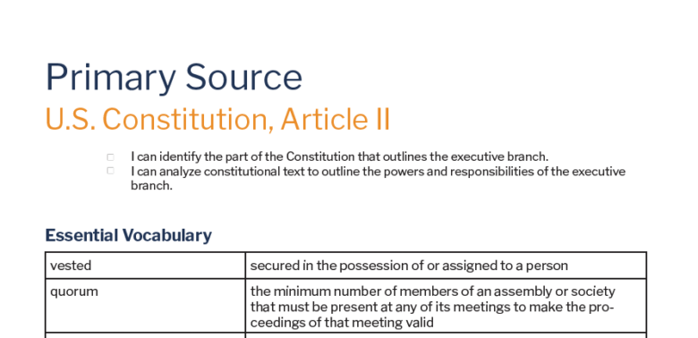 Primary Source: Scaffolded U.S. Constitution, Article II