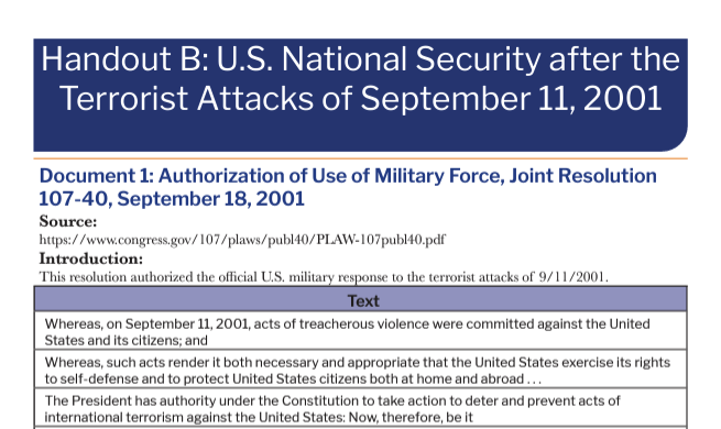 Primary Sources U.S. National Security Response to September 11 Terrorist Attacks