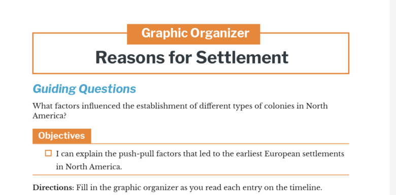 Reasons for Settlement – Graphic Organizer