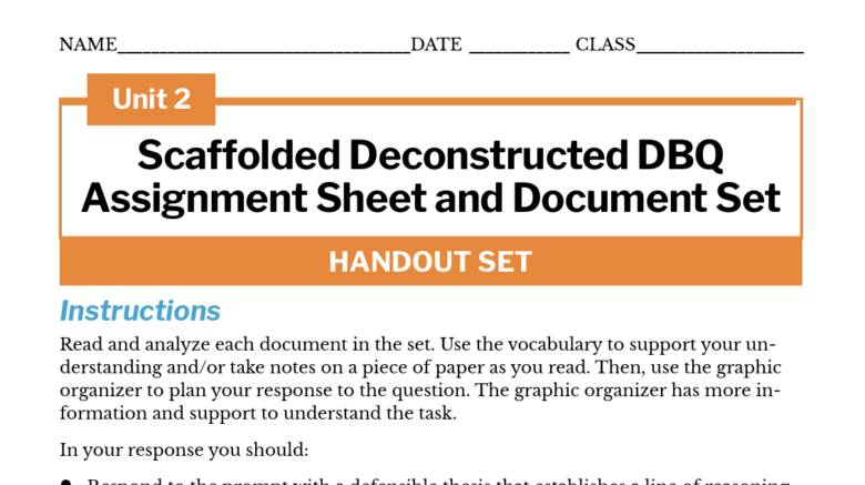 Unit 2: American Revolution Scaffolded Deconstructed DBQ Assignment Sheet and Document Set