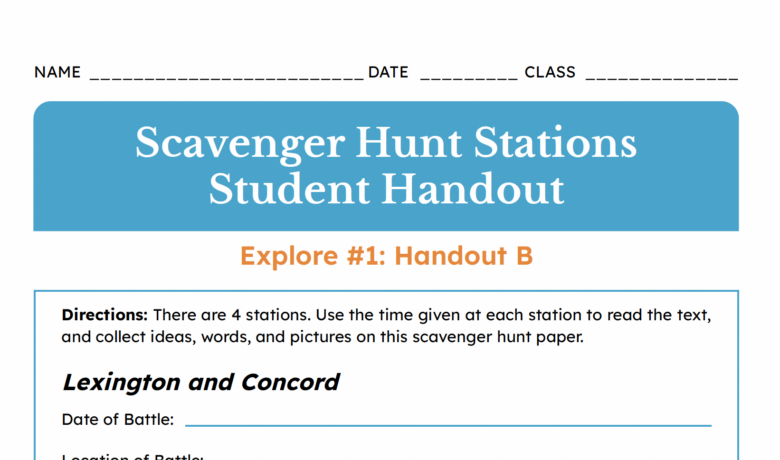 Scavenger Hunt Stations Handout | Elementary