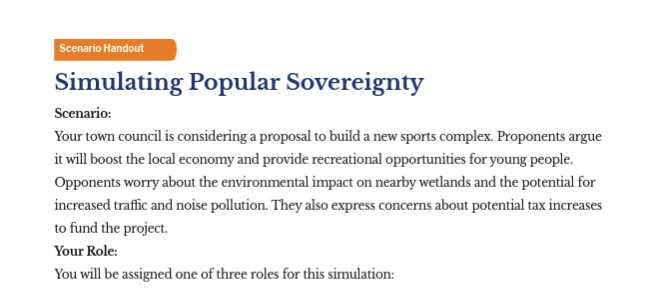 Remember: There is no right answer in this simulation. The goal is to explore the messy process of popular sovereignty and the importance of considering different perspectives when making decisions that impact the community.