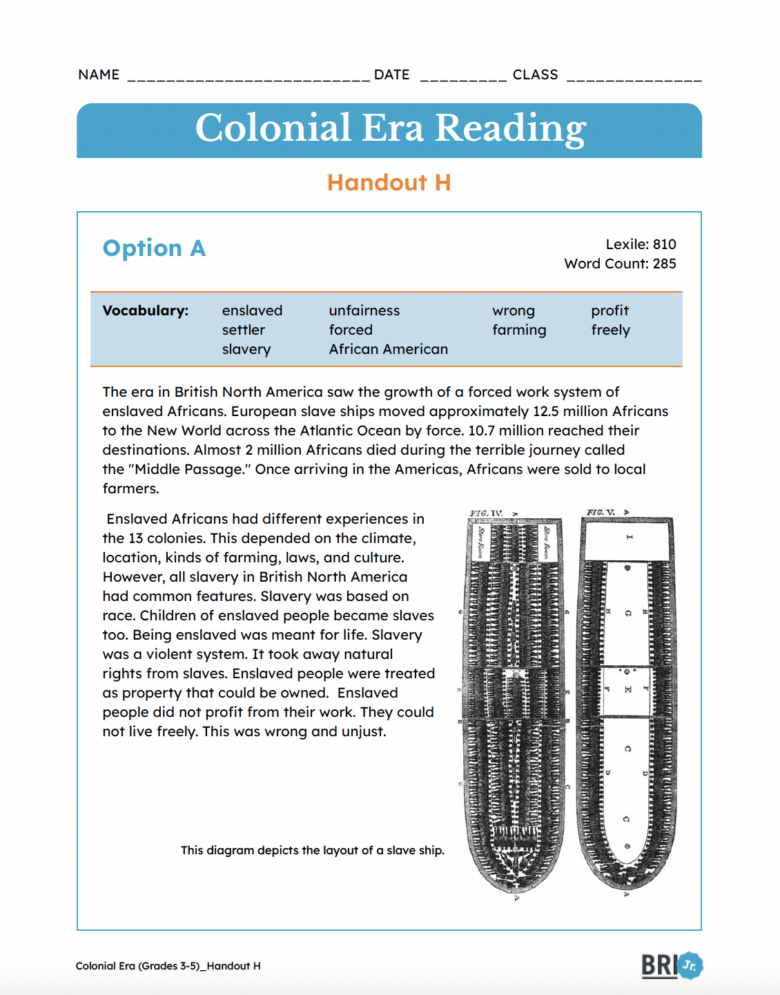 Slavery in the Colonies Reading for Elementary Students