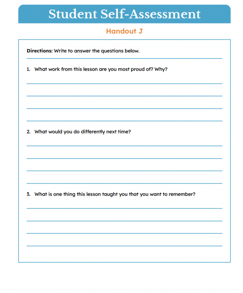 Page:Resources LibraryArrow iconCurriculum:ElementaryArrow iconLesson:ReconstructionStudent Self Assessment ReconstructionA self-reflection activity that allows students to internalize their learning.