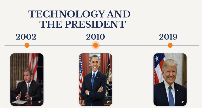 An interactive that highlights how technology has increased the reach and influence of the executive branch.