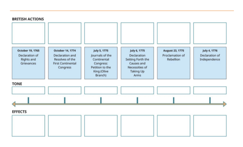 A sequencing activity to help students understand the order of the response of the Colonists to the British Parliament.