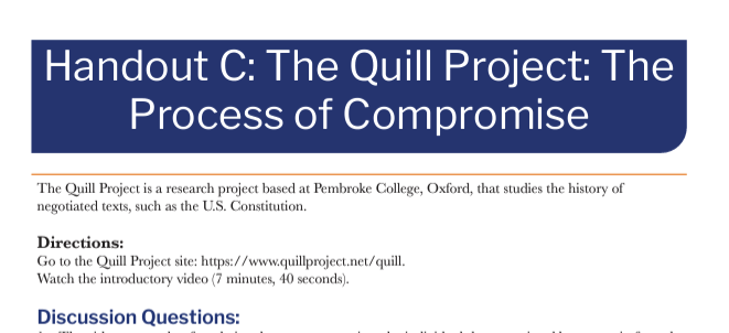 An interactive activity originally developed by the Quill Project based out of Oxford that helps students understand the various compromises made at the Constitutional Convention.