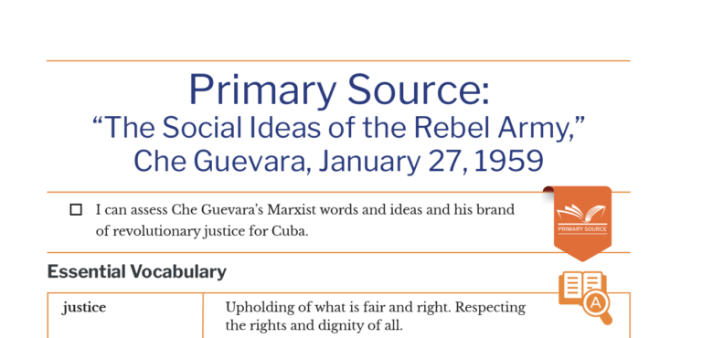 Primary Source: “The Social Ideas of the Rebel Army,” Che Guevara, January 27, 1959