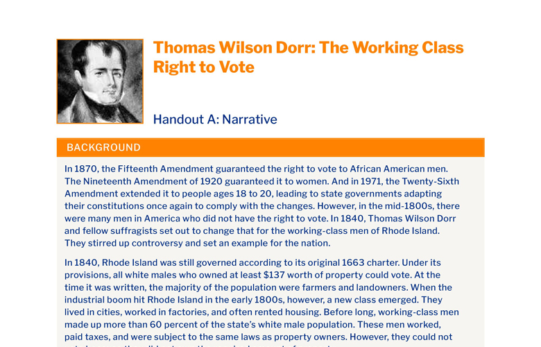 Thomas Wilson Dorr: The Working Class Right to Vote – Handout A: Narrative