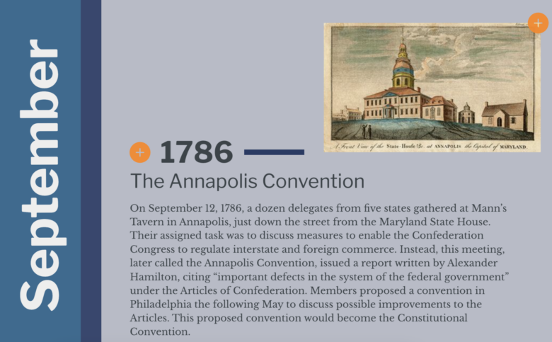 Page:Resources LibraryArrow iconCurriculum:Government and Politics: Civics for the American ExperimentArrow iconUnit:Unit 1: Foundation of American Self-GovernmentTimeline Examination of the Constitutional ConventionAn interactive that helps students explore the timeline of the Constitutional Convention.