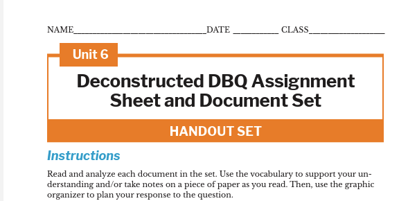 Unit 6: America in Transition Deconstructed DBQ Assignment Sheet and Document Set