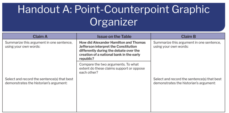 A handout to accompany the scholarly claims made in the corresponding Point-Counterpoint readings that helps student synthesize the claims put forth.
