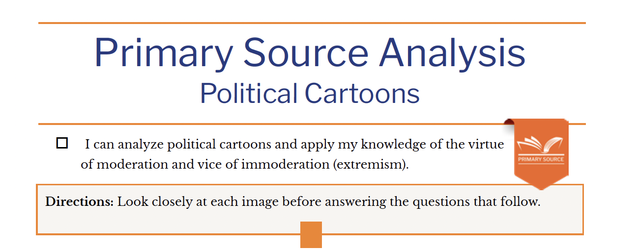 - I can analyze political cartoons and apply my knowledge of the virtue of moderation and vice of immoderation (extremism).