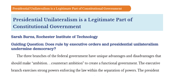 Presidential Unilateralism is a Legitimate Part of Constitutional Government