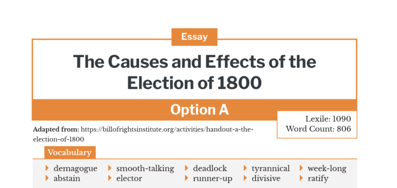 Vocabulary: demagogue, partisan, federalist, deadlock, tyrannical, abstain, elector, runner-up, mislead, tyranny