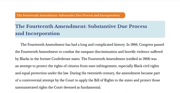 The Fourteenth Amendment: Substantive Due Process and Incorporation