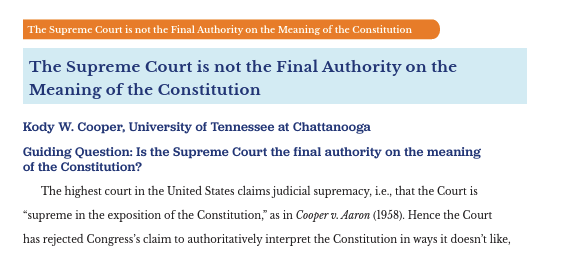 The Supreme Court is not the Final Authority on the Meaning of the Constitution